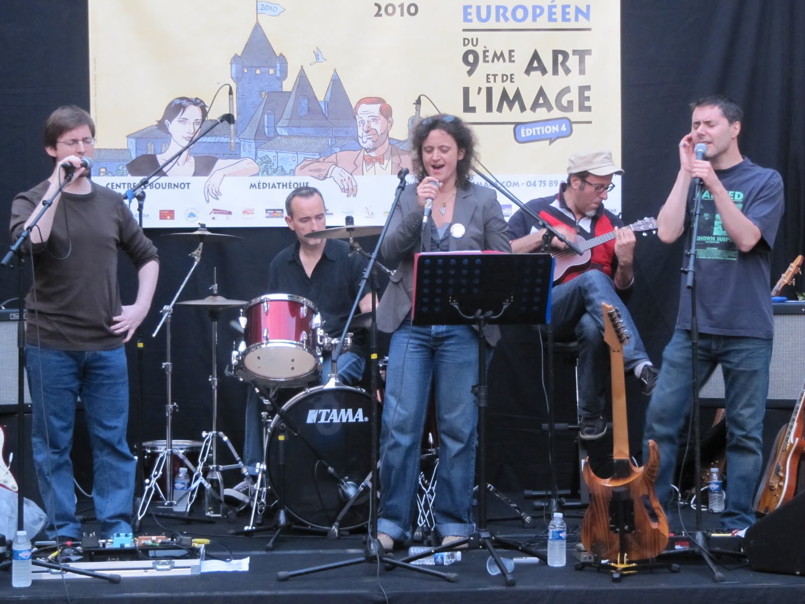 Mille mercis à tous : La librairie Album Comics, les amis présents, les anonymes venus faire la fête avec nous, et surtout Eric Liberge, qui a remplacé PierreF au pied-levé. Nous n'avions jamais joué avec toi, et tu as assuré TOUTE la setlist avec une aisance (au moins apparente) déconcertante. Eric fut le sauveur inespéré de ce concert. Hats off !